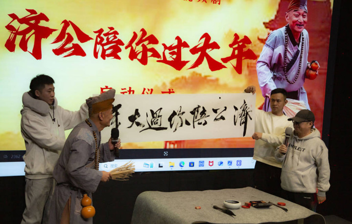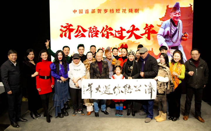 2025年1月10日下昼,中国首部贺岁档短视频剧《济公陪你过大年》在北京东亿文化产业园华尔街影视基地运行。