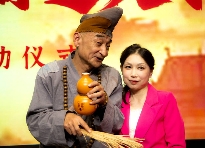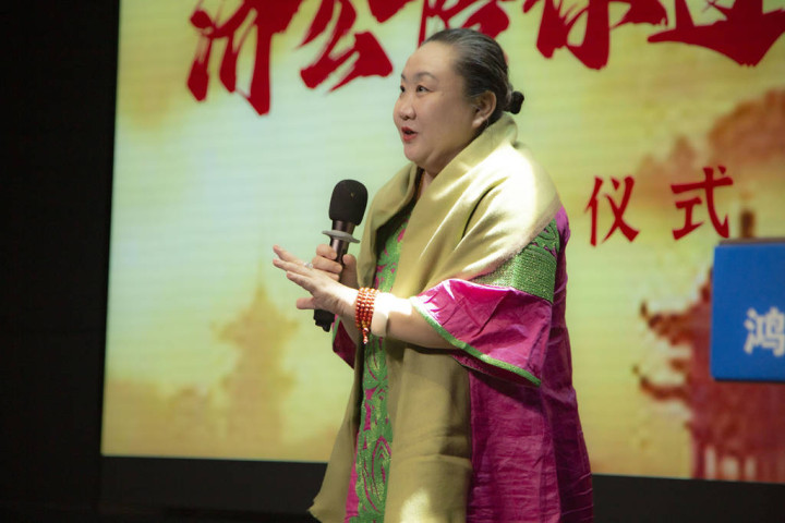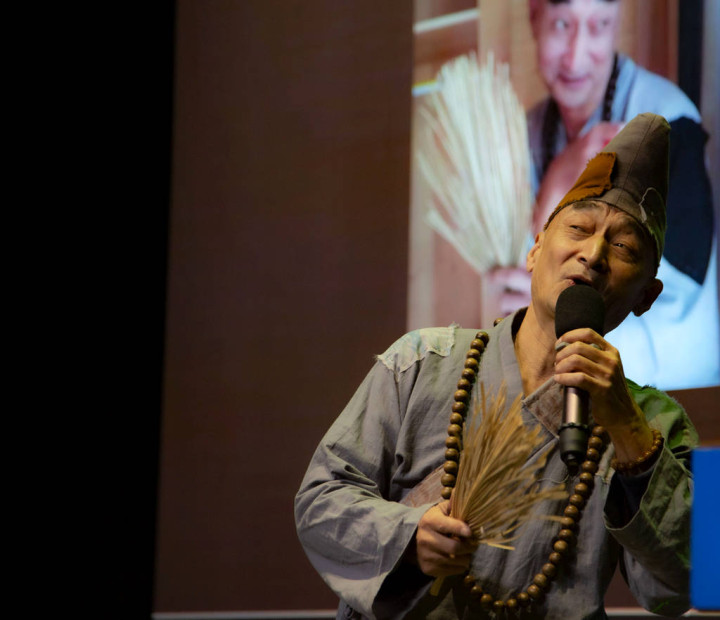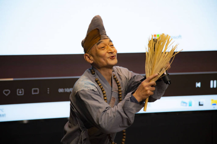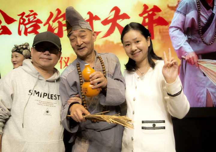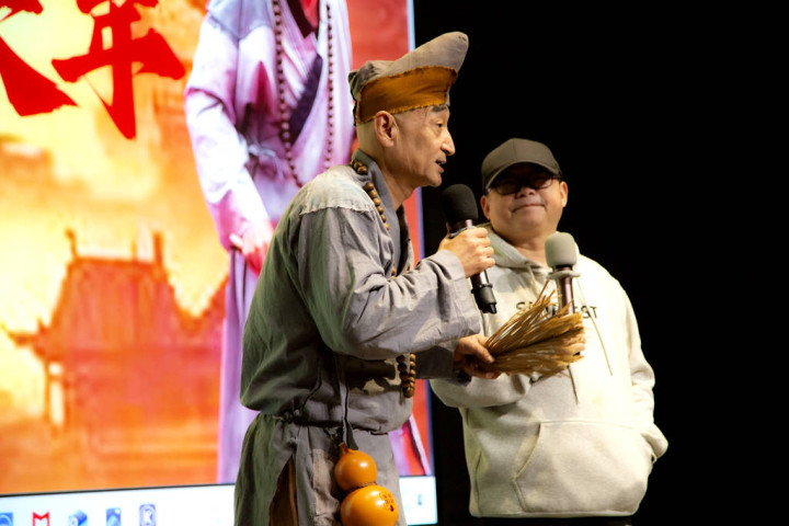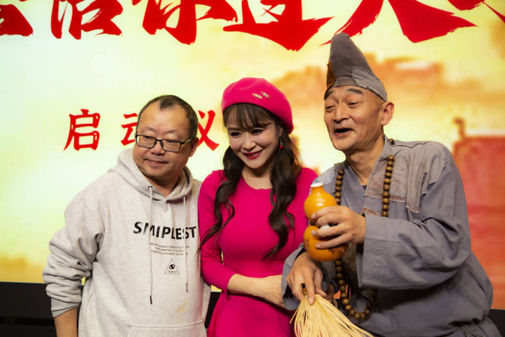 运行典礼现场,董锋率先演唱了我方作词的歌曲《济公狂放游》,之后又挥毫书写了该短视频剧片名。