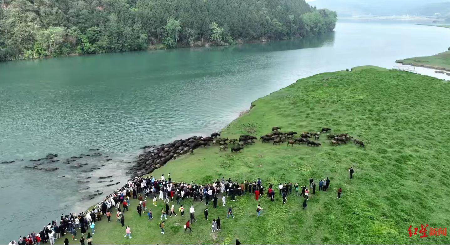 ▲“百牛渡江”生态奇不雅。蓬安县委宣传部供图
