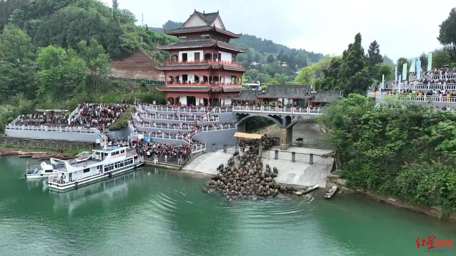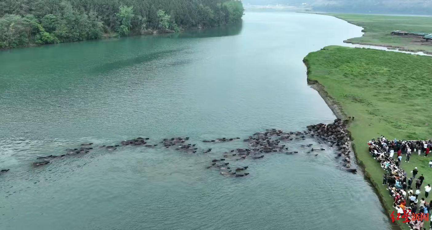 跟着江边栅栏门的开启,上百头牛大张旗饱读冲向嘉陵江,这群牛的意想打算地是位于江心的太阳岛……4月27日,四川南充市2025年嘉陵江放牛季活动在蓬安县举行,来自寰宇各地的搭客现场或在线不雅看,共同感受“百牛渡江”生态奇不雅,恍悟当地生态旅游的特有魔力。