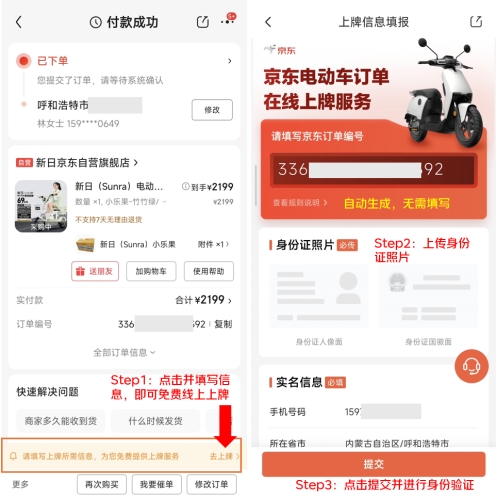 凭据新计策,内蒙古公安交管部门将车辆预查抄、信息登记、号牌披发等行径镶嵌线上购车经由,推动“一市一牌”服务落地。这一举措的中枢是电动车派司实行“属地处罚”原则,即车牌的使用范围与登记城市一致,既严格免除天下调和的期间圭臬,又能让各地凭据土产货交通处罚需求优化服务细节,让猝然者享受更贴合土产货本色的便利服务。京东汽车积极反馈计策要乞降市集需求,让全区电动自行车可通过京东线上渠谈享受便民上牌服务。以往猝然者购车后需自行前去交管部门办理手续,耗时耗力。如今猝然者通过京东APP购买新国标电动车,只需搜索“自营电动车”,选购车辆后在提交订单时按页面指示填写上牌东谈主身份信息,上牌登记经由即可在线上完成,车辆发货前已绑定对应号牌,信得过完竣“购车即上牌、笔直即出发”,极大进步了购车便利性与体验后果。
