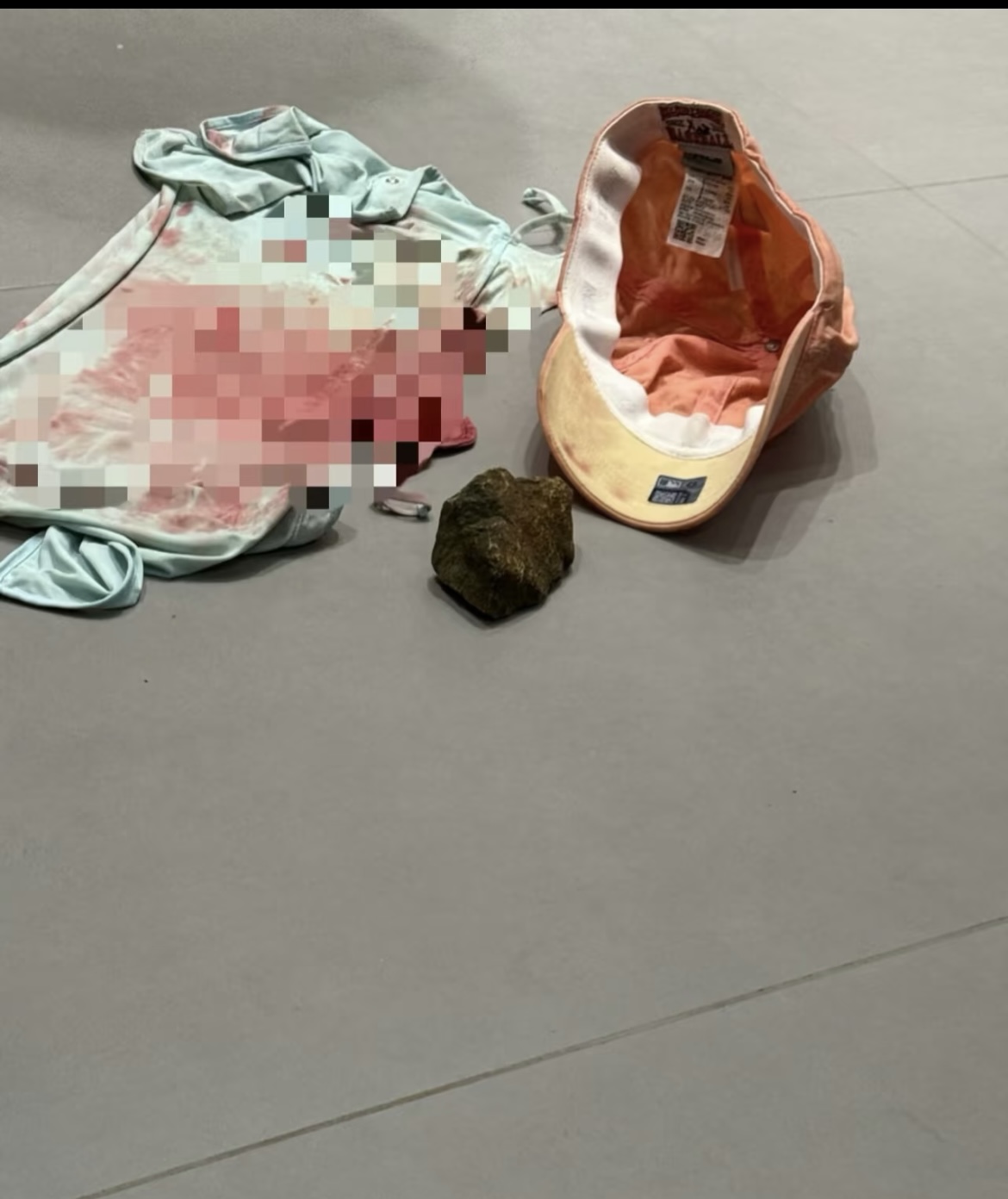 男孩扔的石头和事发时所穿的衣物(受访东说念主供图)