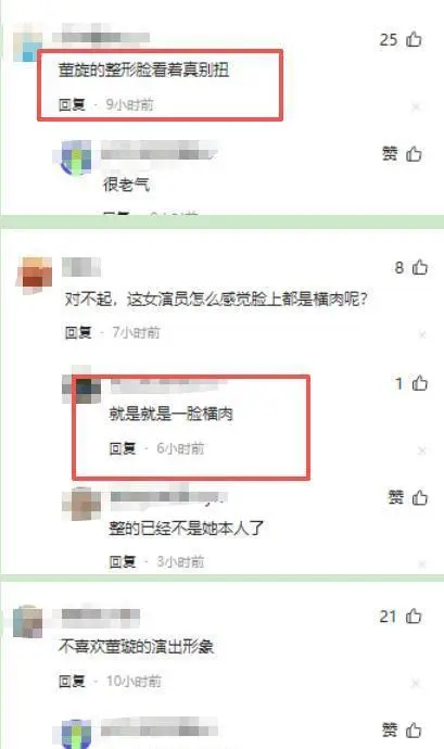 有东说念主在驳倒里说:“董璇的整容脸,看起来挺别扭的,不仅显得老气,还像个奶奶相通。”