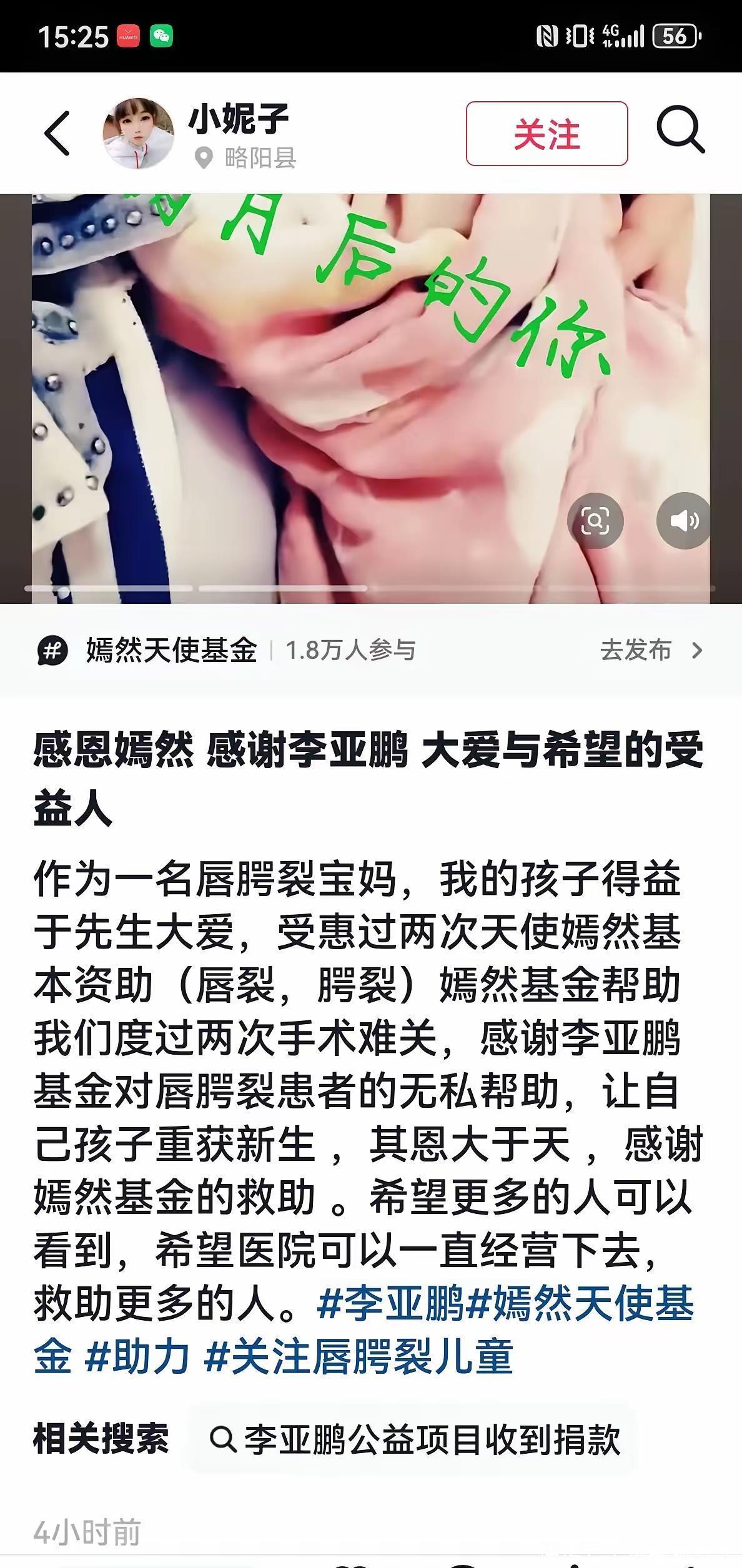 故事得从二十年前提及,李亚鹏和王菲的犬子李嫣降生时患有先天性唇腭裂,带着孩子跑遍国表里求医的日子里,他亲眼见了太多心酸:有的农村家长凑不都几万块,抱着孩子在病院走廊哭到崩溃;有的孩子因为面部颓势,从小被同龄东谈主零丁,连话语都不敢昂首。这份醉心没酿成一时的叹惜,反而在他心里扎了根,2012年,以犬子名字定名的嫣然天神儿童病院认真落地,他说“要让每个唇腭裂孩子,都能笑着长大”。