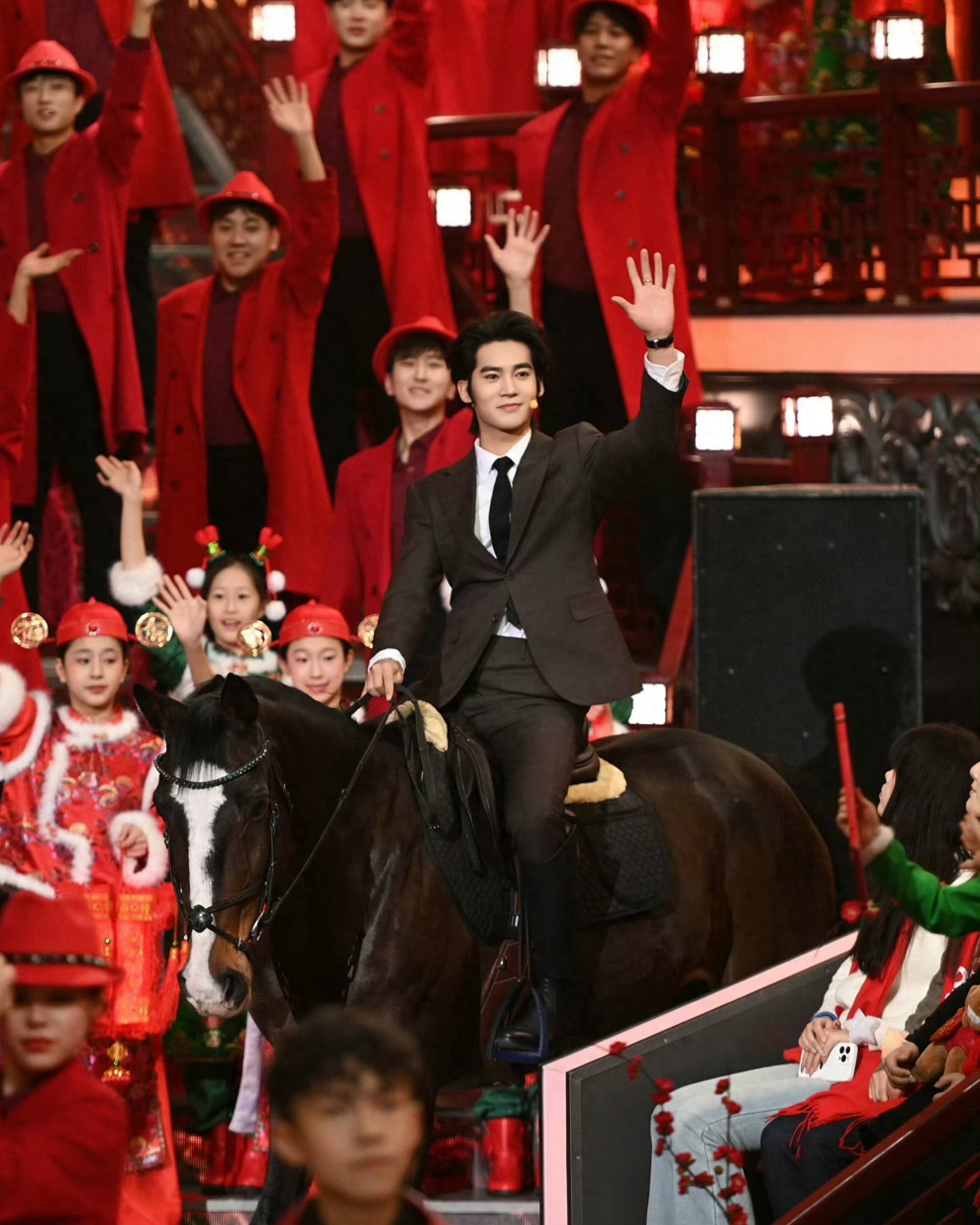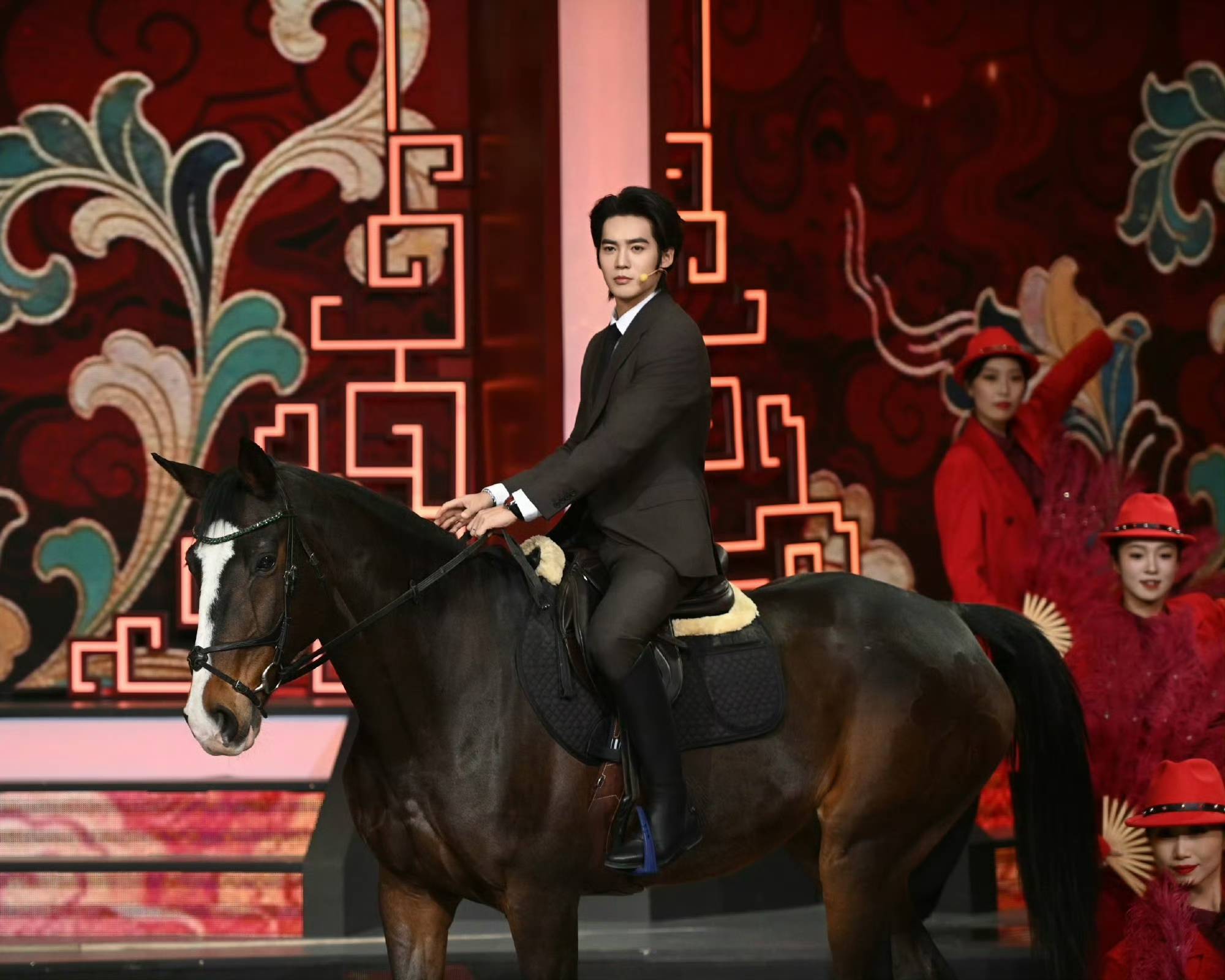 在2026年辽宁春晚中,于适骑乘一匹近2米高的德国温血马“吉祥赢赢”,在舞台进口仅宽2米、高0.5米的有限空间内完成骑行扮演。这是春晚初度将真马引入演播厅,颠覆传统歌舞开场形态,被媒体称为“天才构思”。