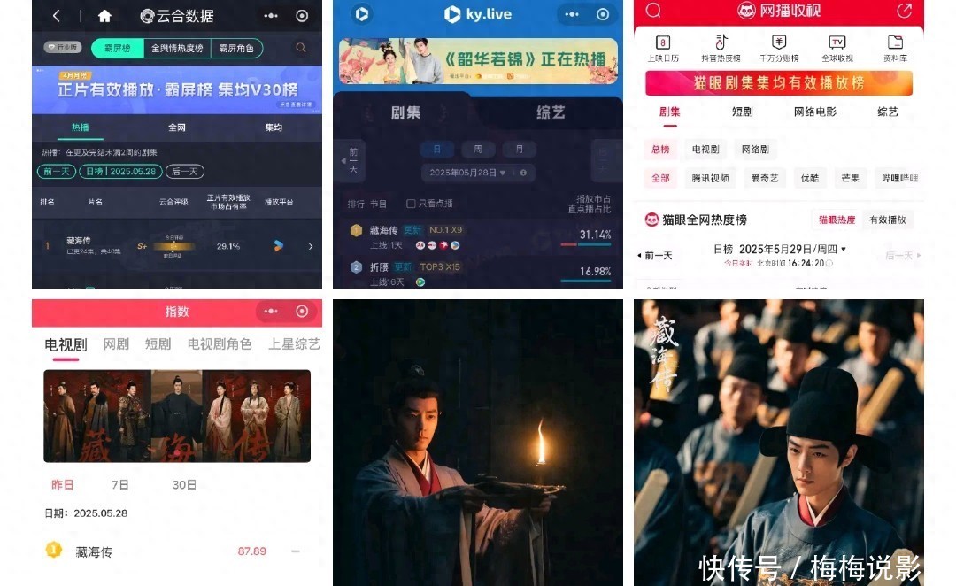 这几天,《藏海传》的收视险些杀疯了。现在在云合、酷云、猫眼、Vlinkage四平台热度都是第一,云合市占率高达31%,可谓红到发紫。