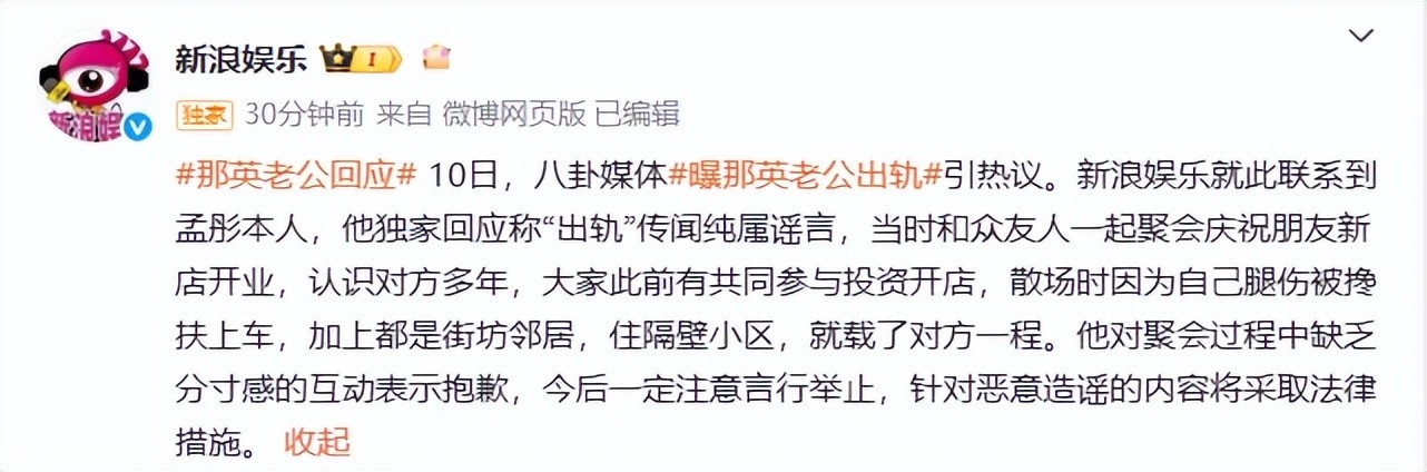 对此,那英老公孟桐给予否定,示意熟识坏话。