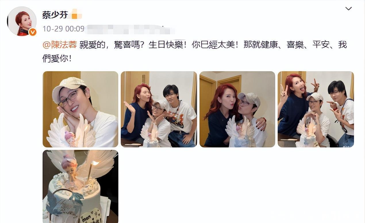 在十月二十九号,咱们的“娘娘”在酬酢平台中发布了几张图片,配文中说着祝我方的好一又友陈法蓉生辰兴盛。