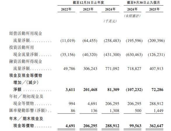 2022年、2023年、2024年以及2025年1-9月,MINIMAX筹画活动所用现款流量净额分辩为11.0百万好意思元、64.5百万好意思元、258.5百万好意思元及209.4百万好意思元。
